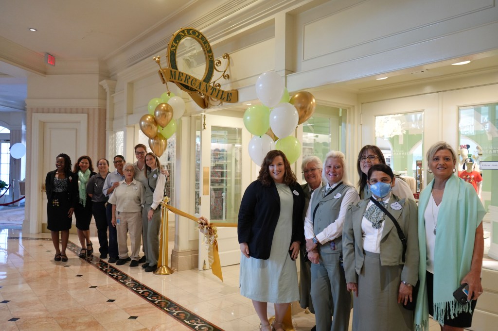 M. Mouse Mercantile is back open for business… and with a fresh new look! Cast Members at Disney’s Grand Floridian Resort & Spa welcomed Guests back to this beloved store with a ribbon cutting ceremony. Adorned with green and gold accents throughout, the store is complete with new Mickey and Minnie Mouse statues, a chandelier, and beautiful artwork.