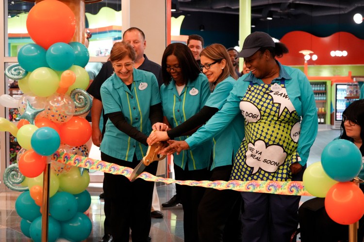 With a wave of colors and nostalgic decor, Everything POP! Shopping and Dining is officially reopen at Disney’s Pop Century Resort! This morning, Cast Members, who have been with the resort since its opening day in 2003, cut the multicolored ribbon and welcomed Guests back to the fully reimagined store and food court.